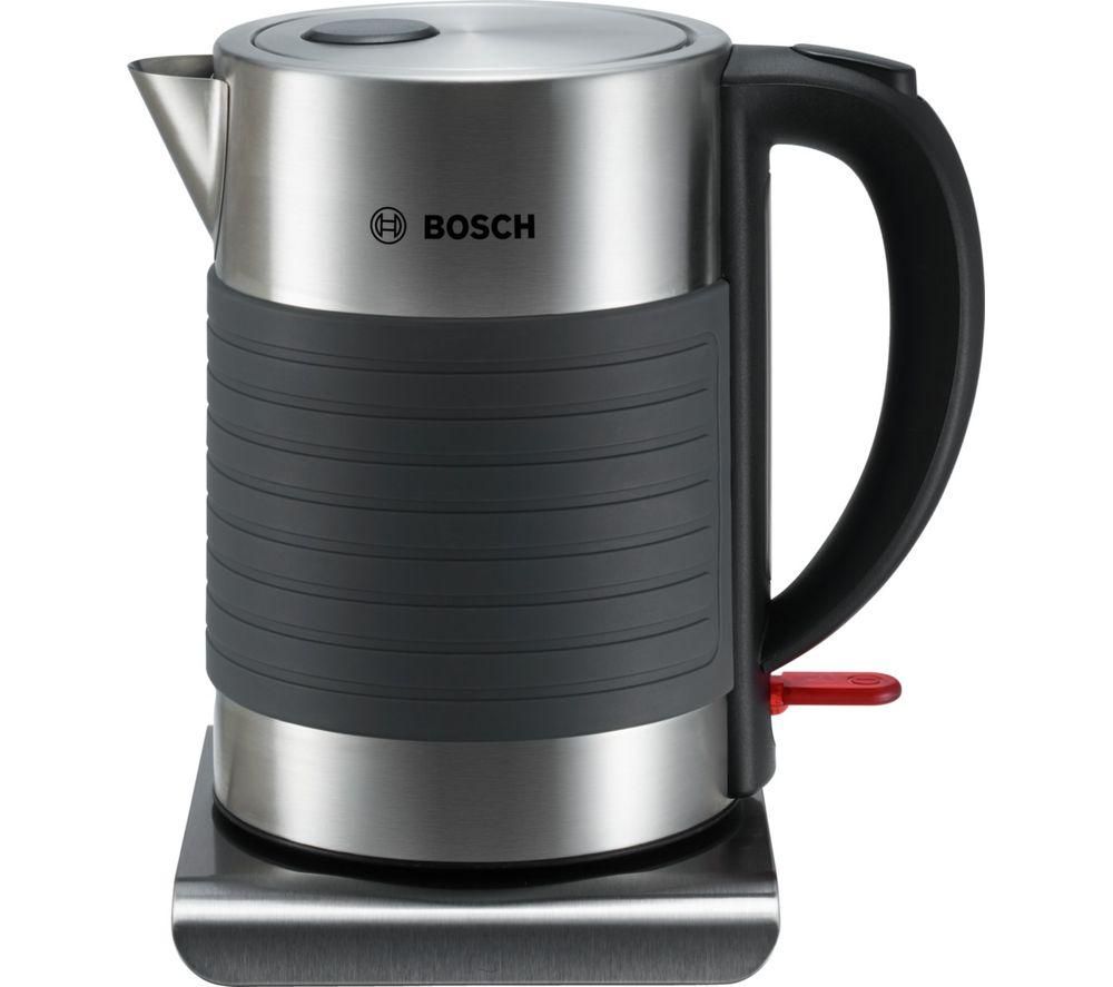 Large capacityPrepare tea for all your guests at once using the Bosch TWK7S05GB Jug Kettle. Don’t spend all your time in the kitchen reloading the kettle while the party is in the living room – simply fill up the 1.7 litre kettle and go spend time with your friends in the other room. With a 90 degree opening, it’s easy to refill the kettle whenever you’re making tea and coffee for everybody.Safe and easy to useThere’s no need to keep an eye on the kettle. Once the water hits boiling, it will shut off automatically, so that you can host and socialise at the same time. And its Triple Safety feature has overheat and boil-dry protection to keep you safe.Plus with the option to store the power cord in the base, you won’t have messy cables running across your kitchen counter.