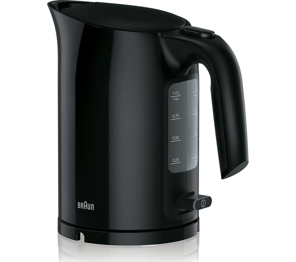 Prepare drinks for everybody with the Braun Series 3 PurEase WK3110.BK Jug Kettle.With a fast boiling system, you can enjoy a cup of tea in even less time, while the convenient handle and flip lid make it easy to carry and refill the kettle. A large water window lets you see how much water you’re using, and a three-way protection system keeps you and your home safe. The kettle automatically switches off when it is up to temperature or removed from the base, with boil-dry protection if there isn’t enough water inside.