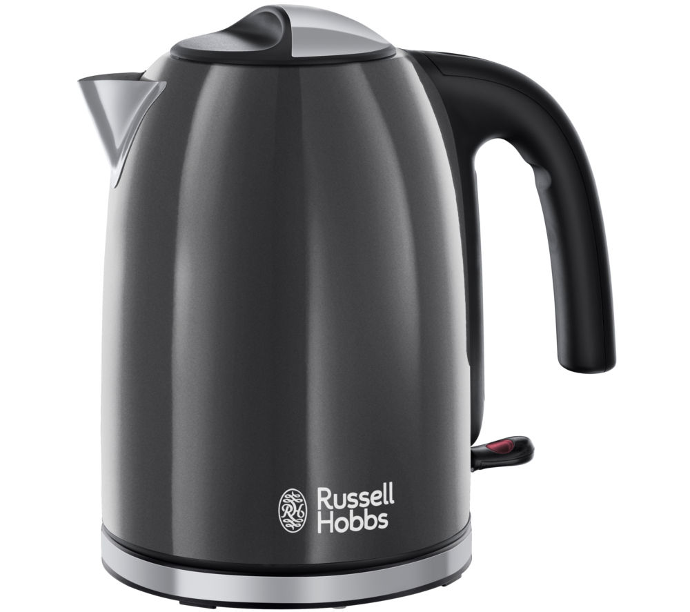 Top features: – Get your drink quicker with a rapid boil feature – Boil in large quantities with a 1.7 litre capacity – Easy to maintain thanks to a washable filter – Practical rotating base and easy pour spout – A stylish design to suit any modern kitchen Rapidly boil cups faster with a rapid boil featureFor when you need a cup of tea in a hurry, the rapid boil feature will boil a single cup or two cups faster and economically.Boil in large quantities with a 1.7 litre capacityA generous 1.7 litre water capacity lets you boil enough water for seven cups, or enough water for your cooking needs.Easy to maintain thanks to a washable filterMaintaining your Russell Hobbs Colour Plus 20414 Jug Kettle is easy. The anti-limescale design features an easily removable washable filter. Just wash it when needed to keep your kettle in good condition.Practical rotating base and easy pour spoutDesigned to make your life easier, the kettle features a 360-degree rotating base suitable for left and right handers, and an easy pour spout to eliminate spillage.A stylish design to suit any modern kitchenA polished grey and stainless steel design provides a modern finish that looks great in any kitchen.